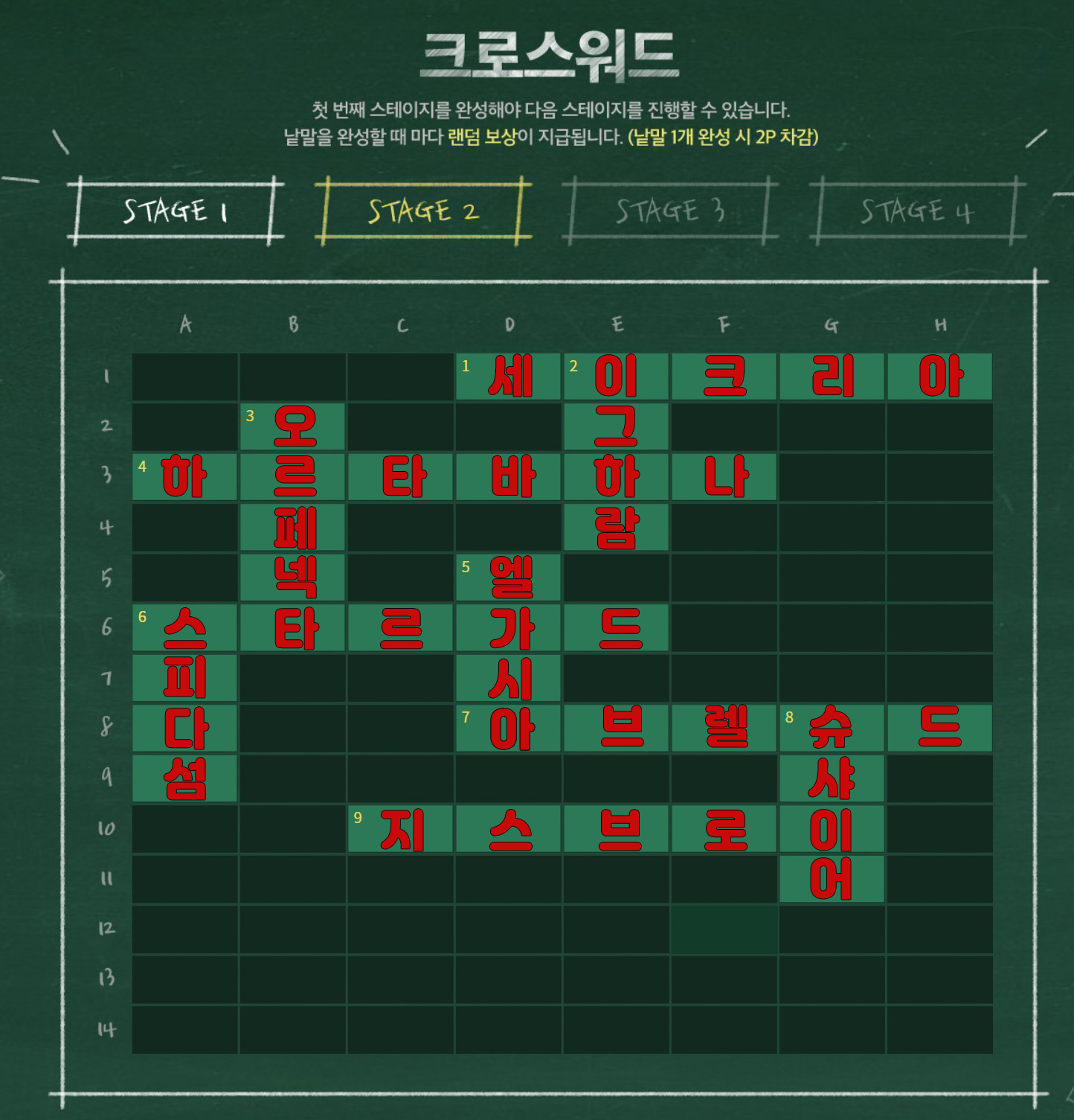 현재 로아에서 진행 중인 크로스워드 이벤트는 총 4주 동안 진행되며, 오늘부터 스테이지 2 시작이에요.